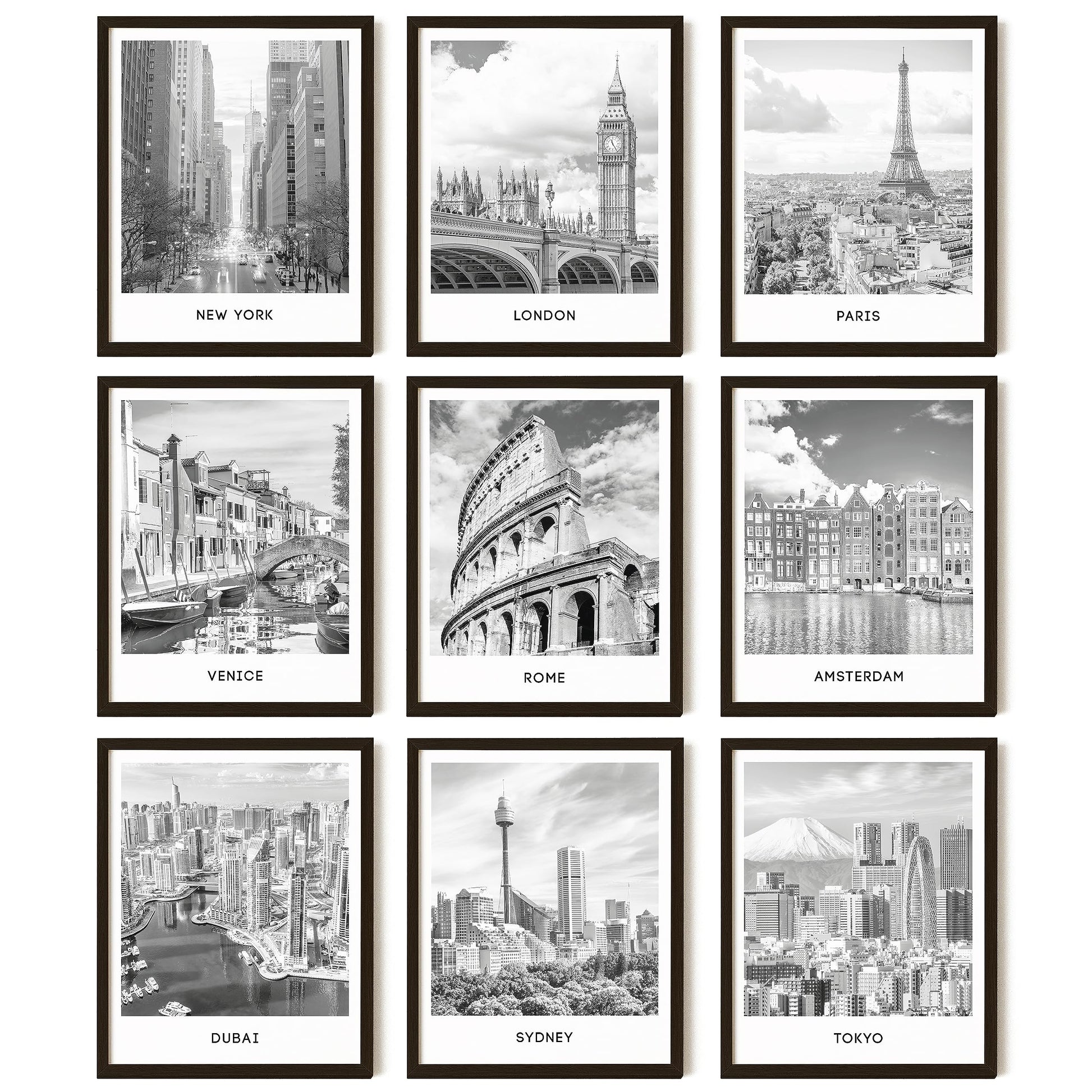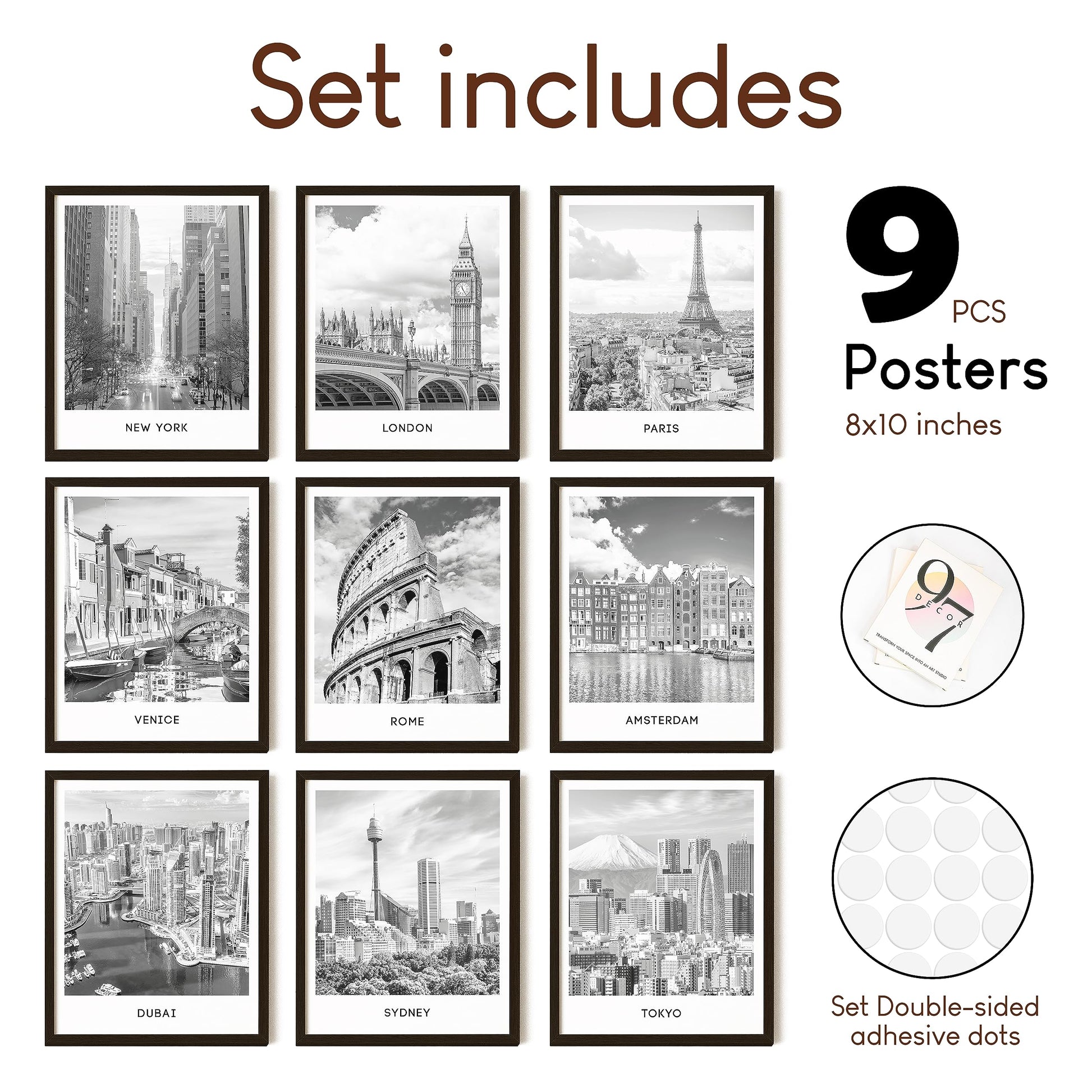 Transform your space with the sophisticated beauty of 97 Decor City Posters. This set of nine 8x10" unframed posters captures stunning black and white cityscapes, including iconic skylines of Paris, London, New York, and Rome. Perfect for any urban enthusiast, these architectural wall art pieces add a touch of elegance and sophistication to any room. Printed on high-quality cardstock, they offer a premium feel and long-lasting finish. Packaged in a sturdy gift box, these posters arrive in perfect condition, ready to be framed and displayed. Ideal for living rooms, bedrooms, or offices, 97 Decor City Posters bring the timeless allure of urban landscapes to your home.